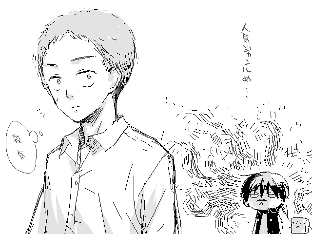 珍しく背景もがんばって描きこんだけど人物であんま見えないので、貧乏根性で